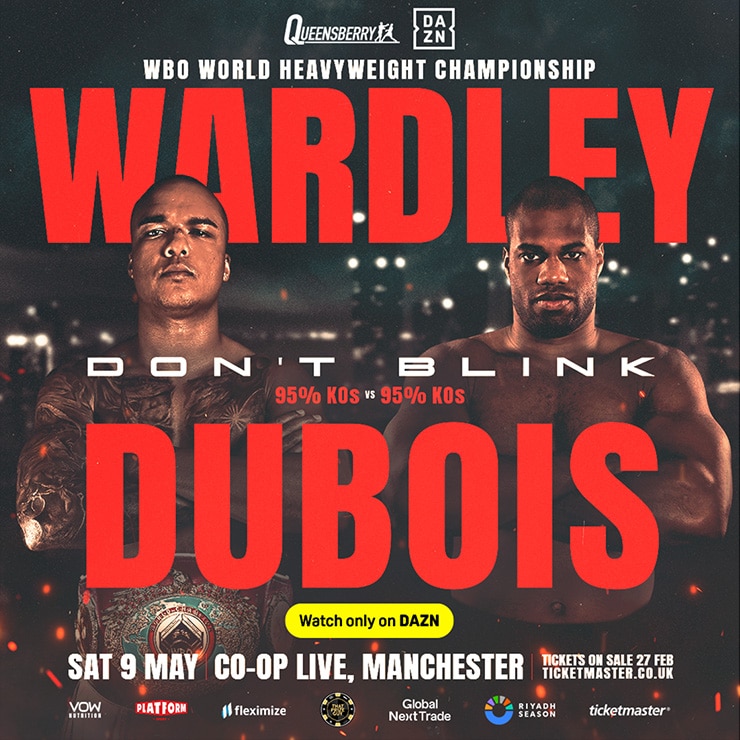 Moses Itauma v Jermaine Franklin 28/03/2026 Find Tickets Fabio Wardley V Daniel Dubois 09/05/2026 Find Tickets MVP’s Dubois vs. Harper & Scotney vs. Flores 05/04/2026 Find Tickets Fury v Makhmudov 11/04/2026 Find Tickets